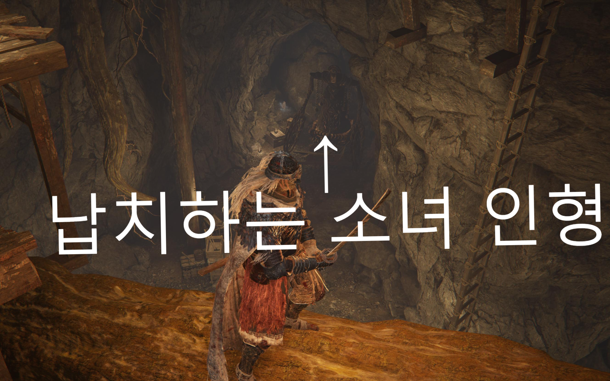 여기까지 오셨으면 선택을 하셔야 합니다. 사다리로 내려가서 납치하는 소녀 인형과 싸울건지, 나무위로 적당히 피해갈건지.