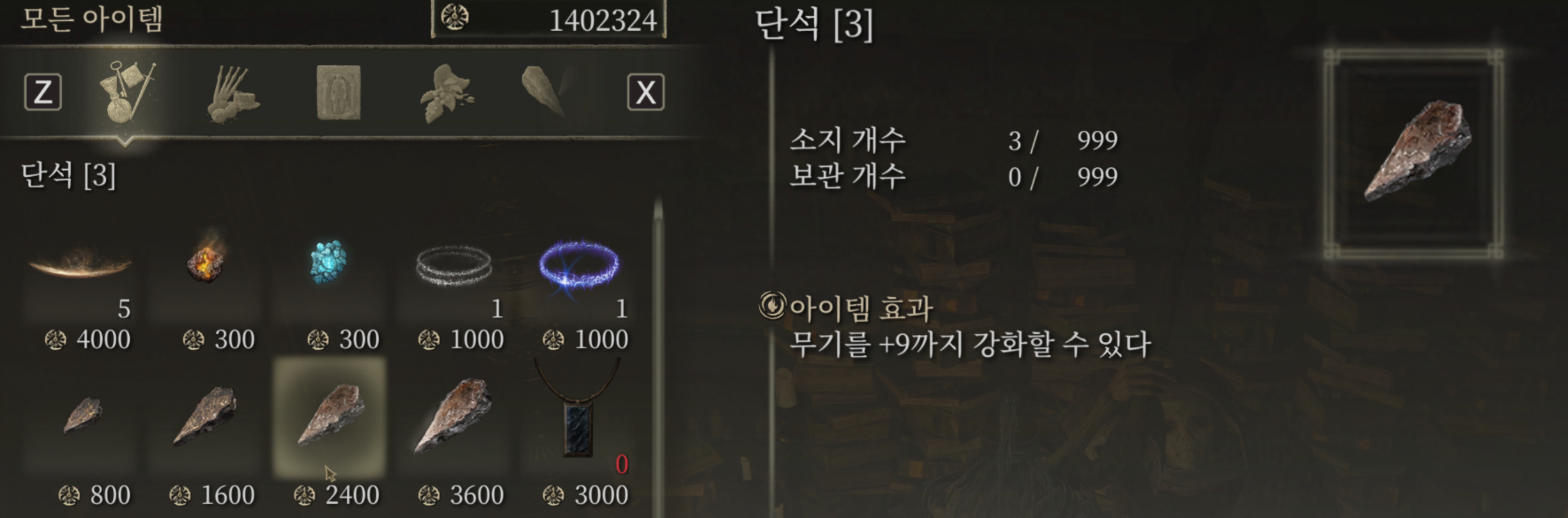 엘든링에서 단석은 무기 강화를 위해 필요한 아이템입니다. 강화 단계나 아이템 종류에 따라 필요한 단계가 달라지지만 이제 시작하는 엘린이들에게 단석 1, 2는 꽤나 소중한 아이템입니다. 이