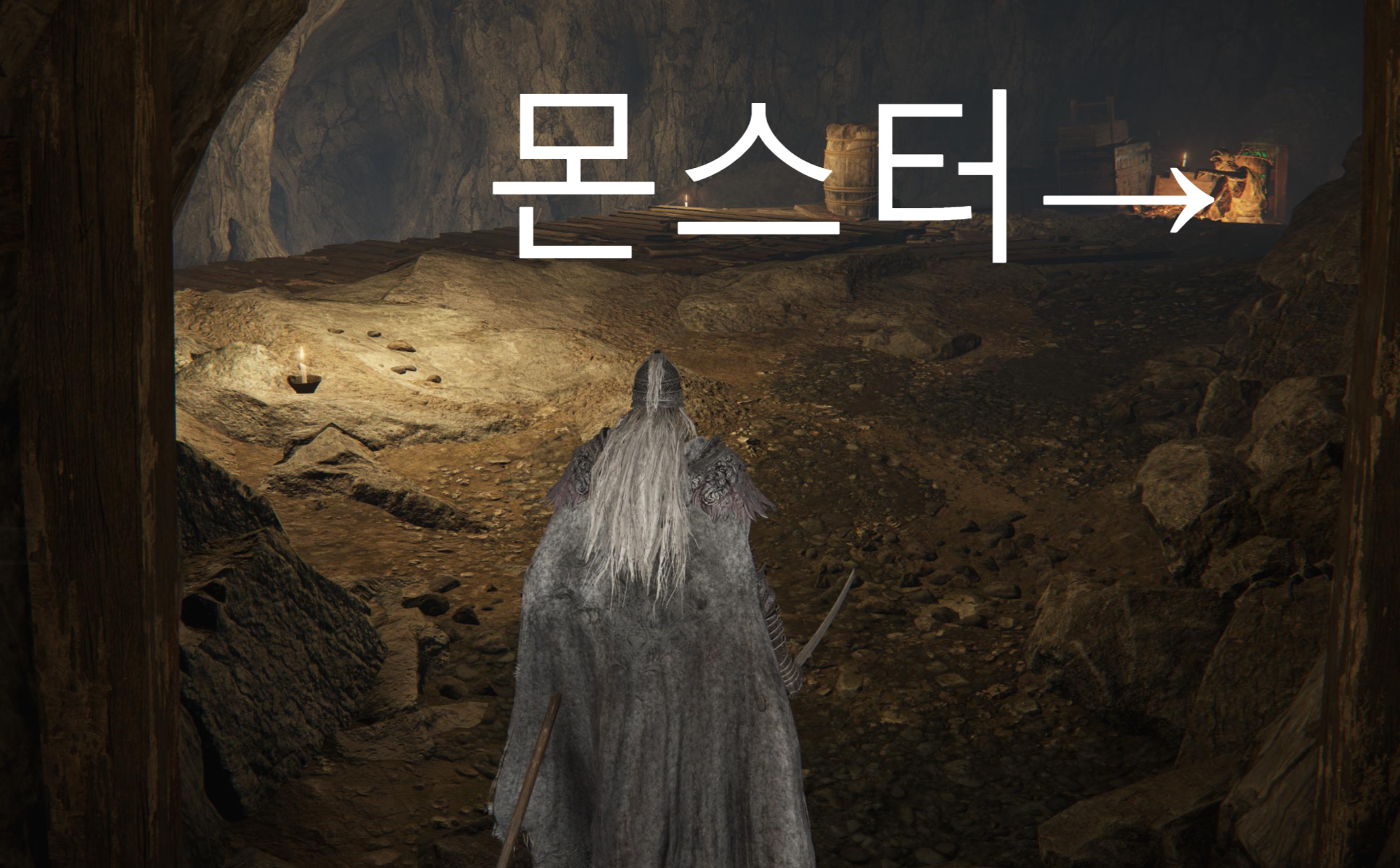 오른쪽 몬스터 부터 제거하고 아래쪽을 바라보면 우측에 짐으로 막혀있는 길이 보입니다.