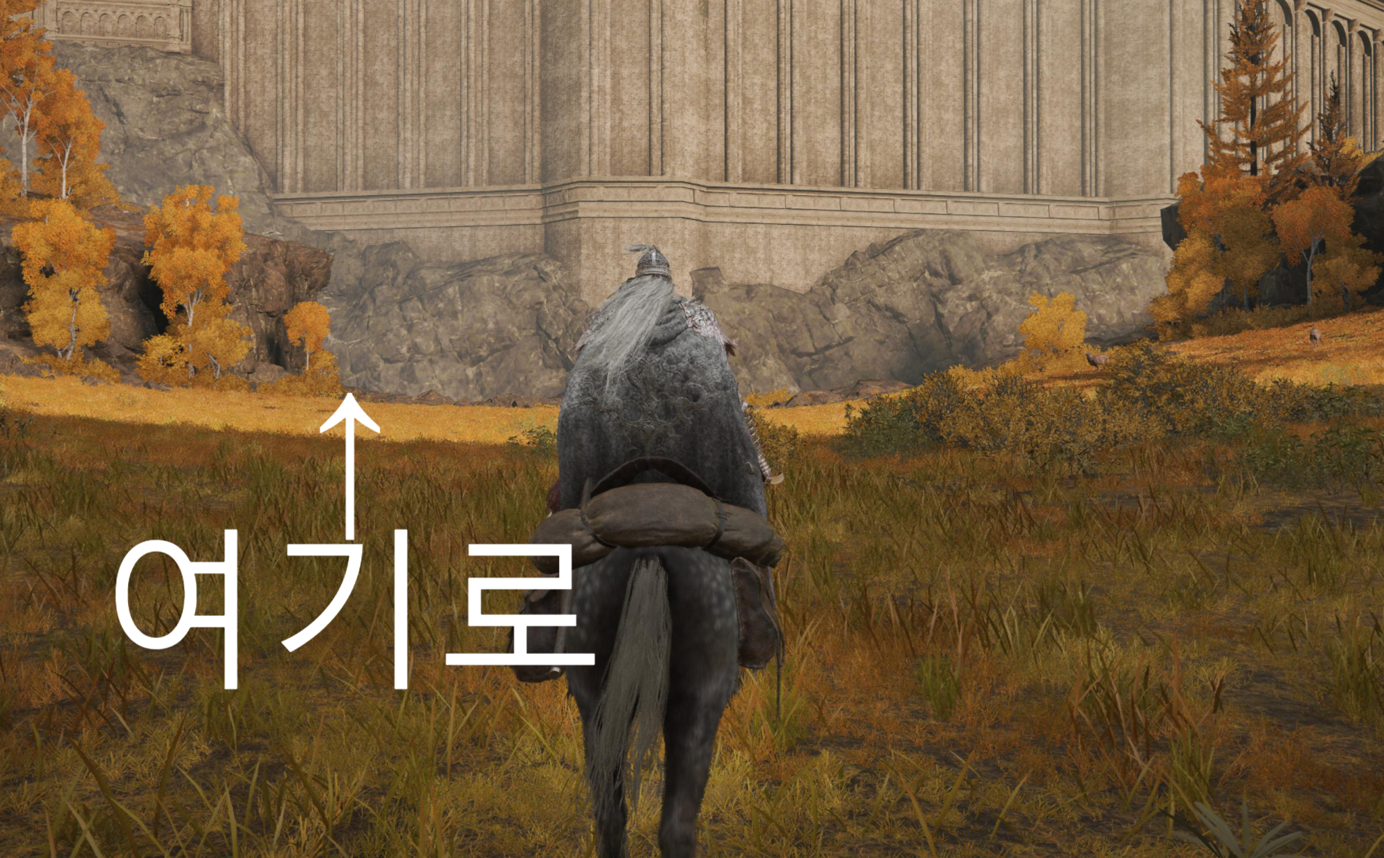 외각 환영 나무 축복에서 바라보는 방향 그대로 달리면 됩니다. 그리고 넓은 공터가 나오면 좌측 바위 방향으로 가주세요.