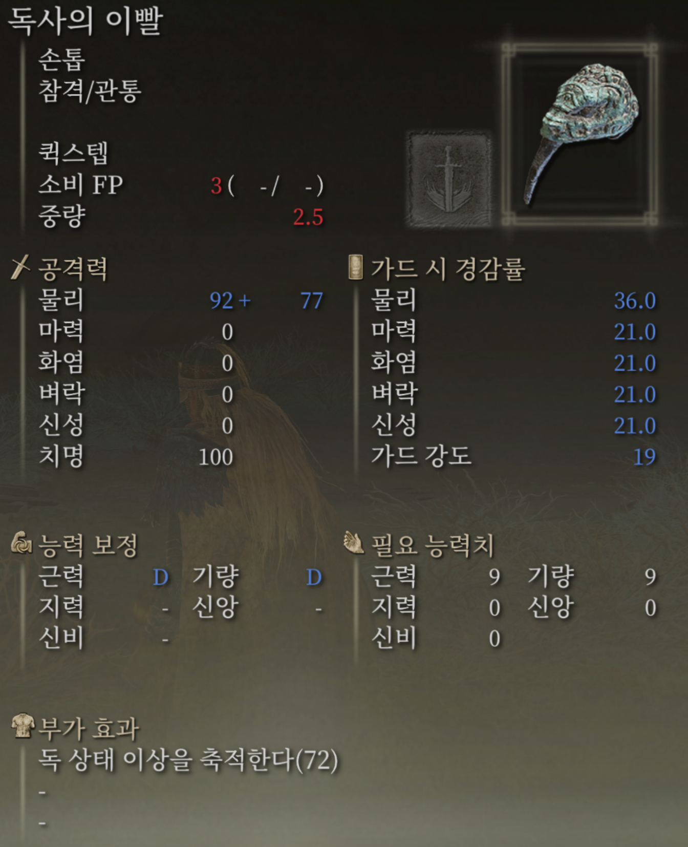 뭐 그렇게 효율적인 아이템들은 아니라서 공략이 별로 없는 구간이 아닌가 싶습니다. 폐기 동굴에서 다시 한번 경험했지만 사냥개의 스텝은 진짜 최고입니다. 하나정도는 꼭 들고다니세요 ㅋㅋ