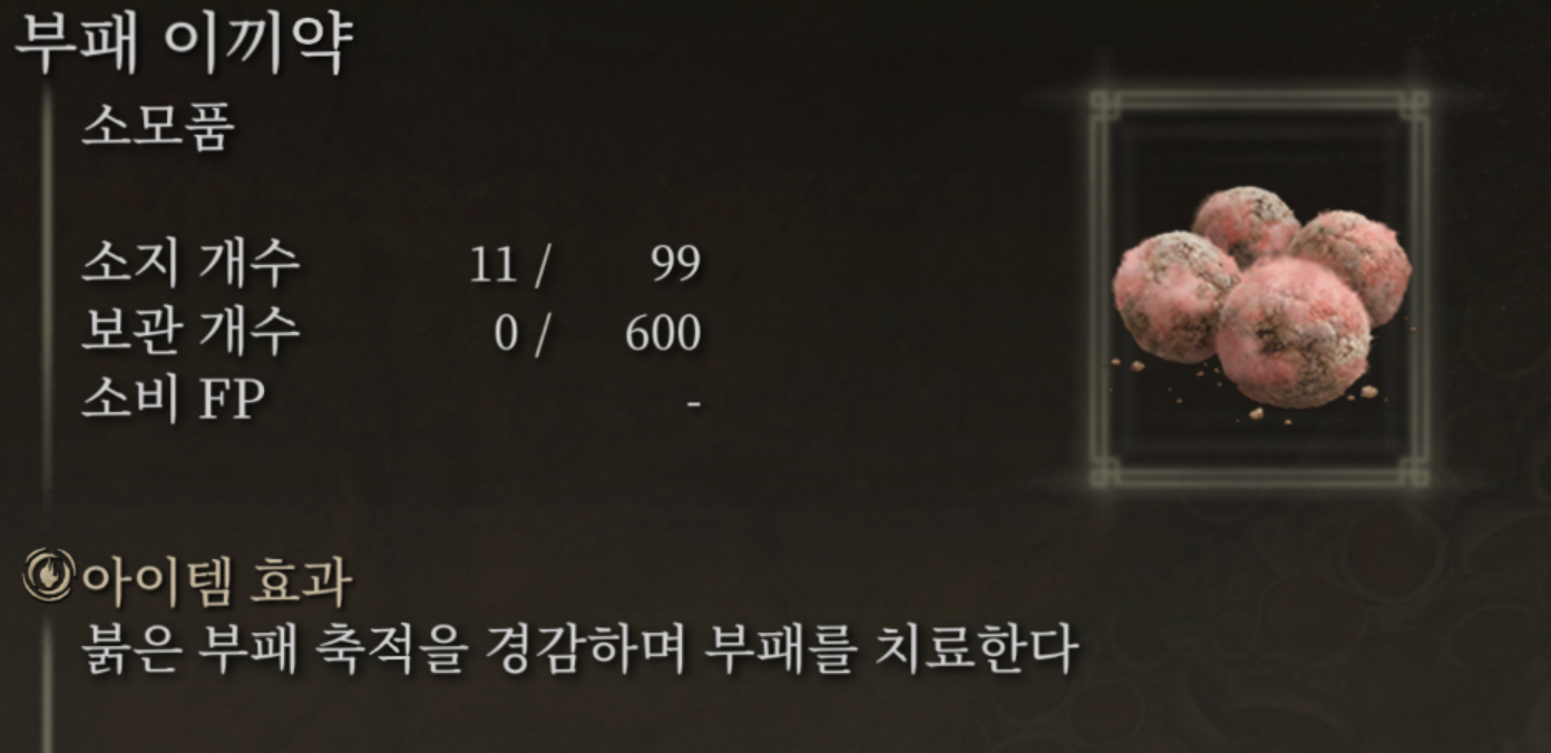 폐기동굴은 붉은 부패 장판이 있어서 출발 하시기 전에 부패 이끼약, 전회 사냥개의 스텝이 붙어있는 무기를 챙겨가시면 좋습니다. 특히 사냥개의 스텝이 있는 경우 부패 이끼약이 필요 없을 정도로 스무스하게 이동할 수 있습니다.