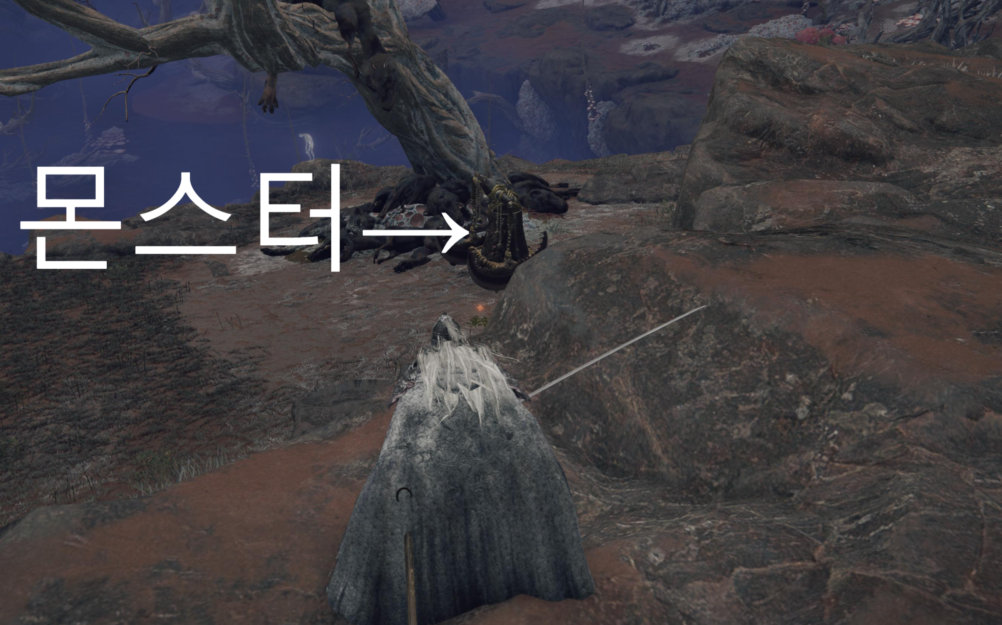 사냥개 스텝으로 가볍게 부패지역을 빠져나오면 또 절벽이 나옵니다. 이때 최대한 오른쪽 끝을 보시면 몬스터가 하나있습니다. 그리고 좌측 소녀인형 시체앞에 뱀활이 있습니다. 몬스터 잡고 뱀활 드시고 다시 몬스터 있는 쪽으로 돌아와서 진행하시면 됩니다.