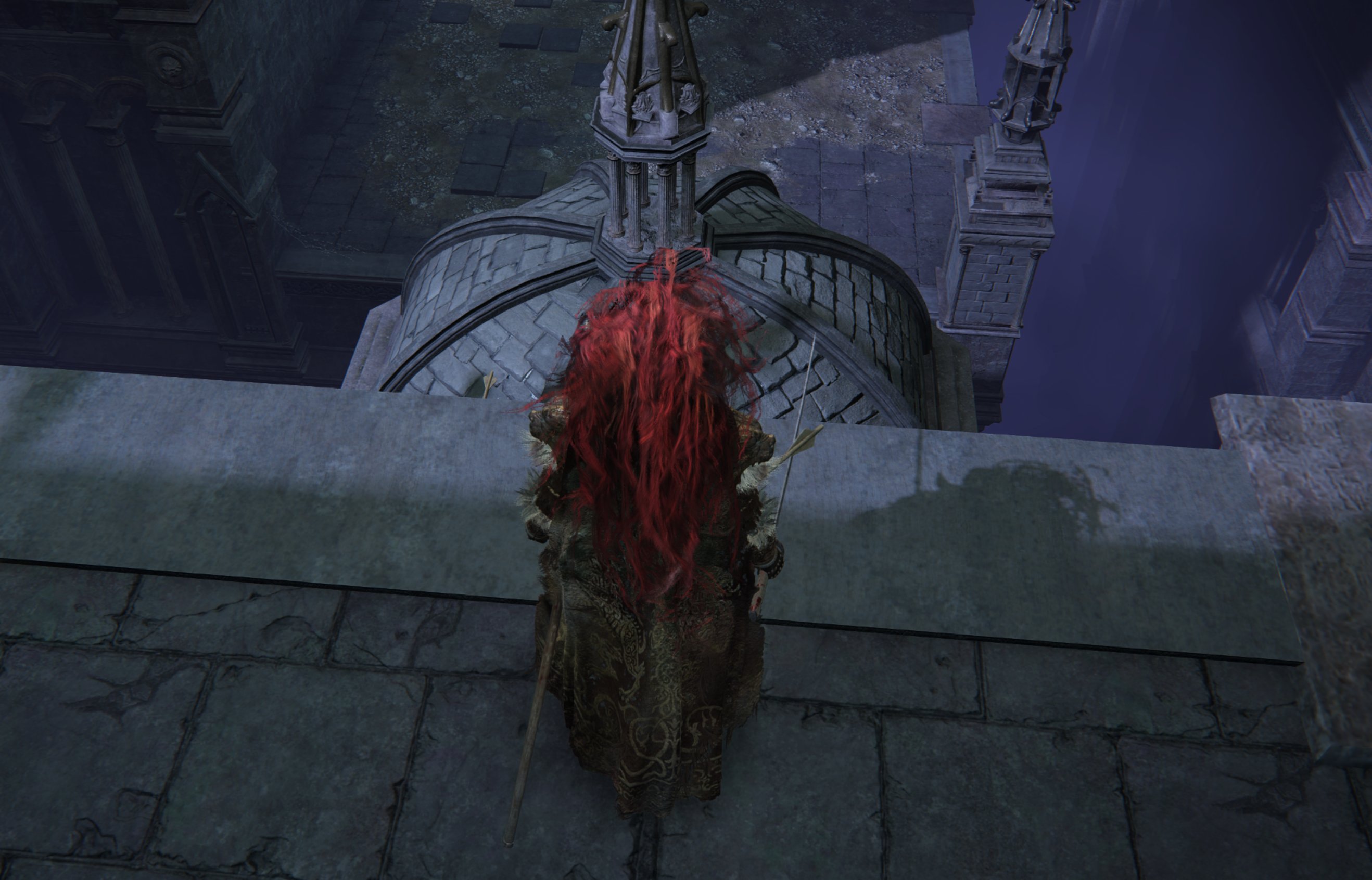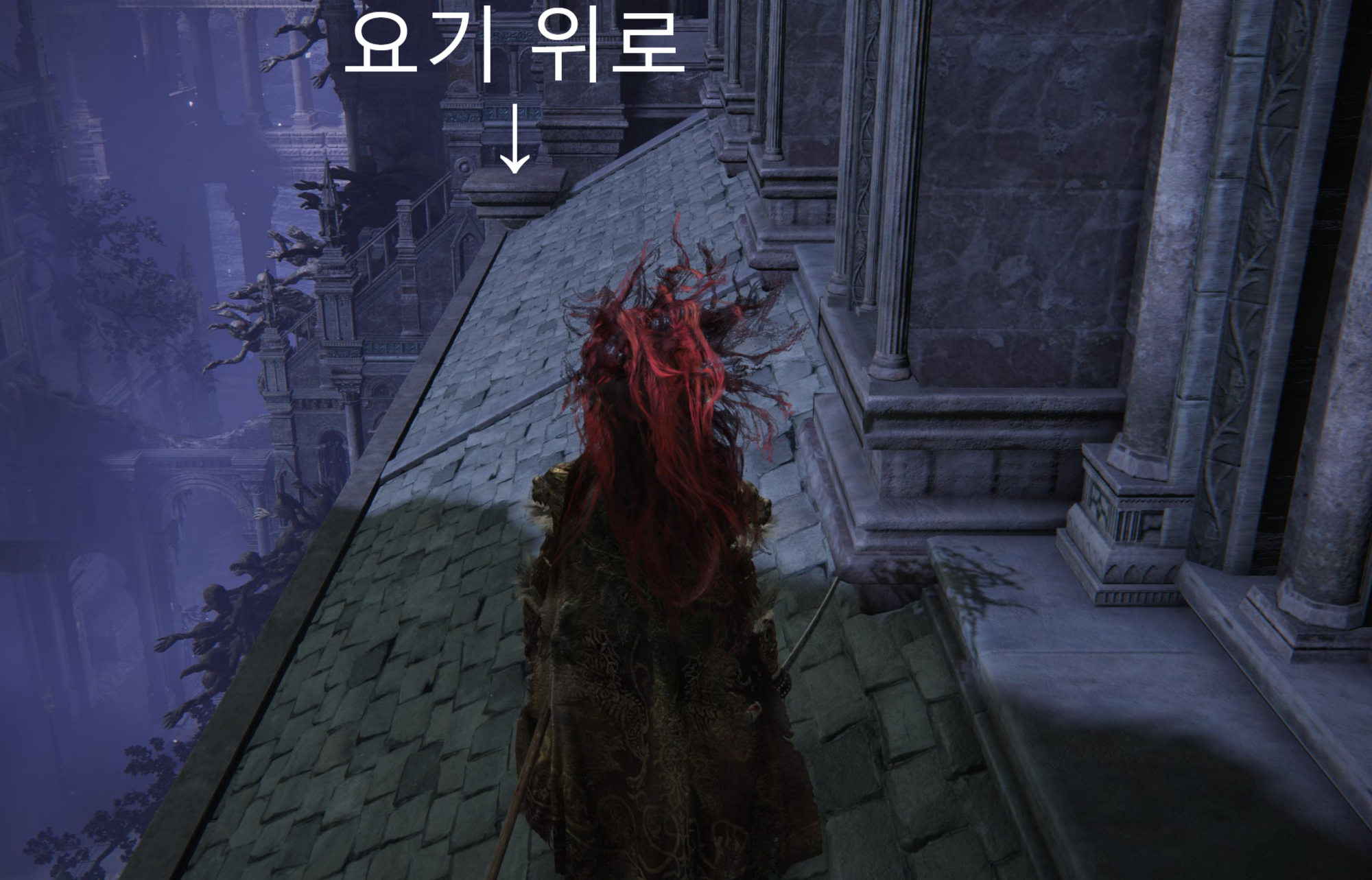 가다보면 아래 지붕으로 점프해서 뛰어내릴 수 있는 장소가 있습니다. 점프 안해도 안전하게 떨어 질 수 있습니다. 지붕끝 좁은길을 타고 앞쪽으로 쭉가세요.
