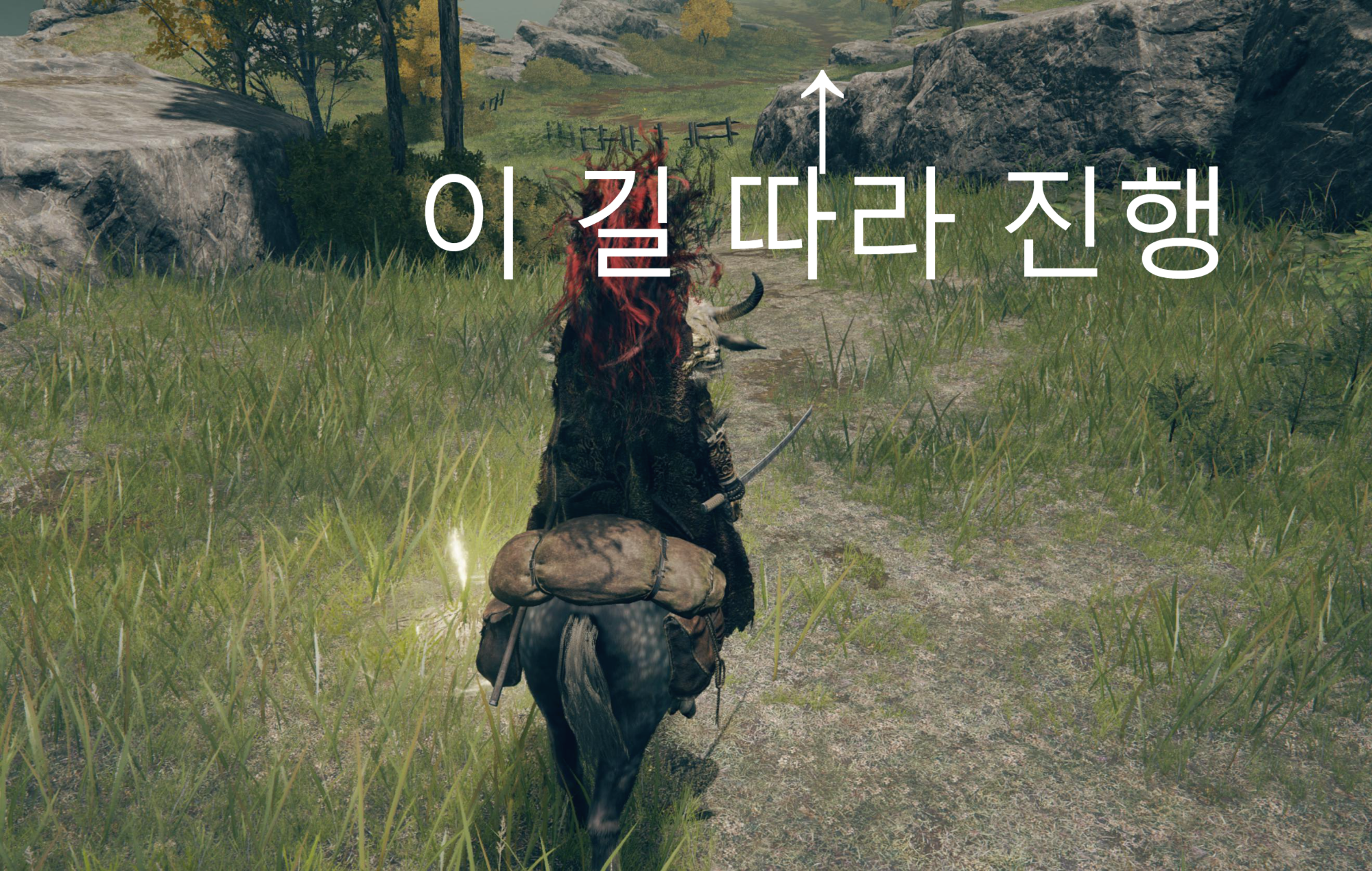 축복에서 방향 안바꾸고 앞을보면 울타리같은게 보입니다. 울타리를 지나치면 바닦에 어두운색 흙길이 보이는데 그길을 따라서 진행하던 방향으로 쭉 가주세요.