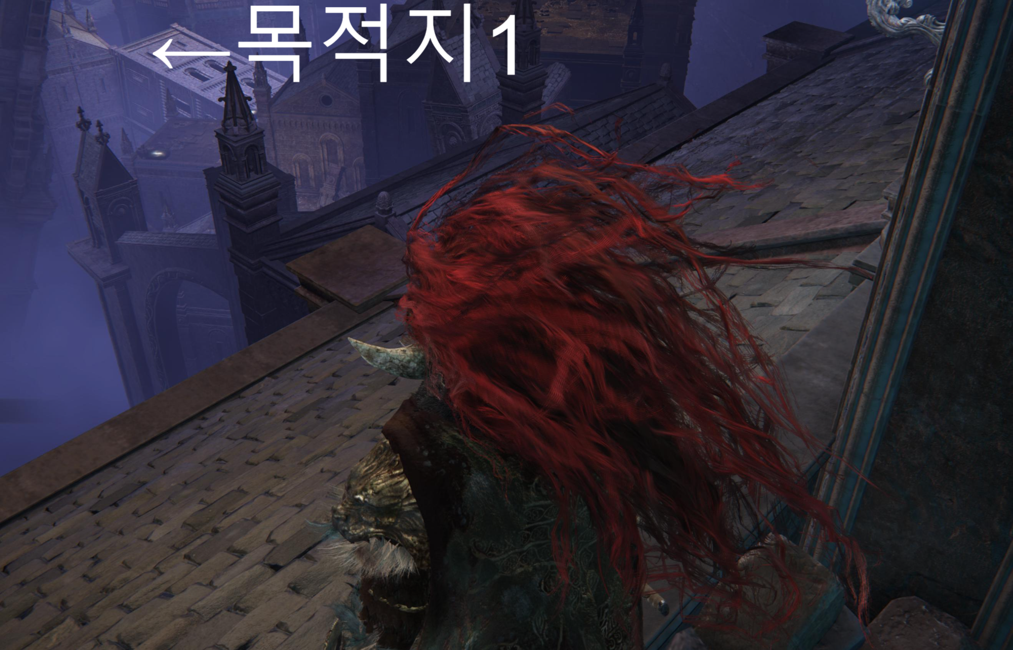 지붕을 타고 목적지1까지 가야합니다. 우선 지금 밟은 지붕을 타고 오른쪽으로 가주세요.