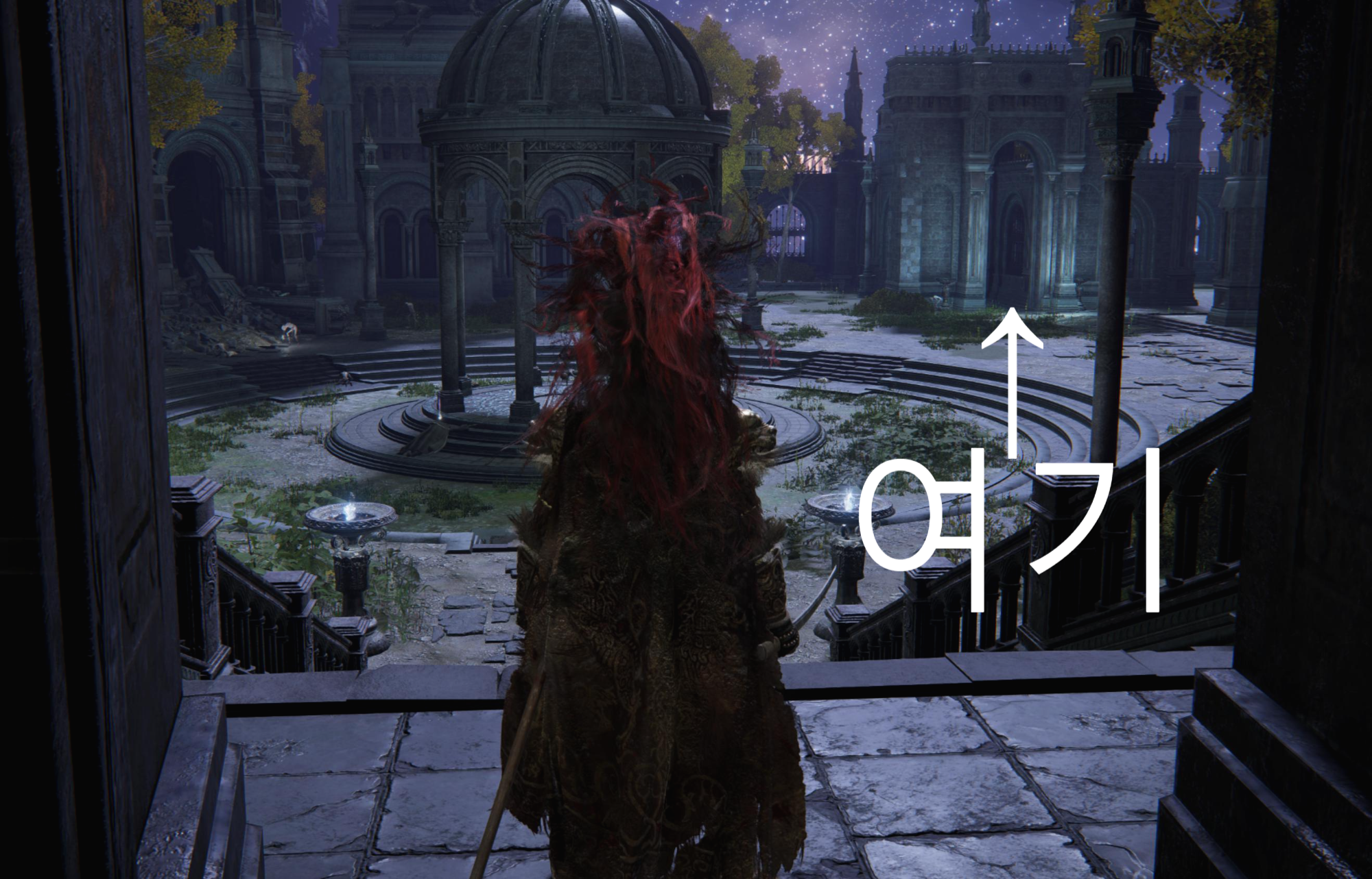 아래로 내려가서 정면에 보이는 문으로 들어가시면 영원한 도읍 노크론 축복이 있으니 찍어주세요.