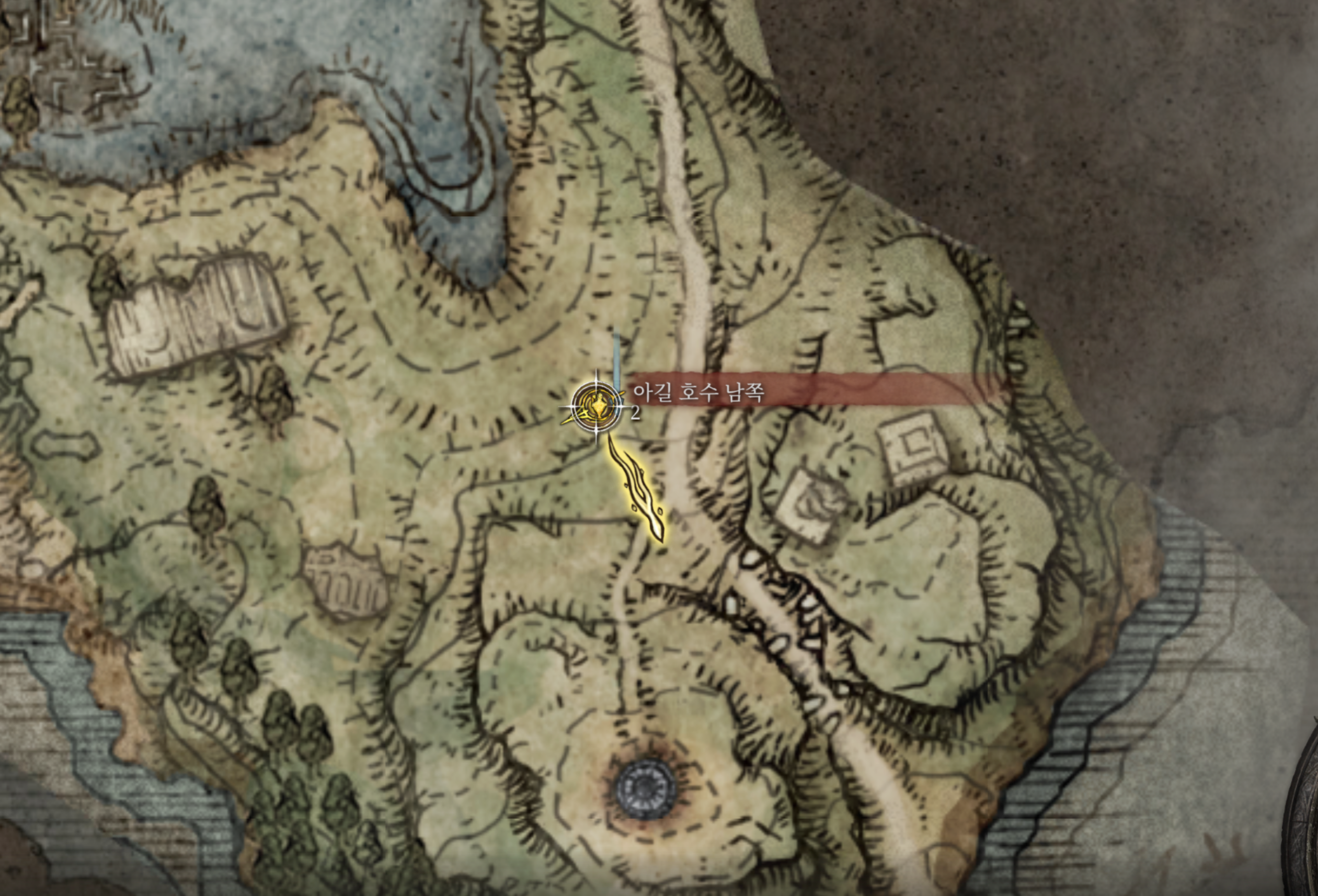 아길 호수 남쪽 축복으로 이동하면 캐릭터가 보는 정면에 호수가 하나 있습니다. 이쪽 방향으로 쭉 달려주시면 되겠습니다.(살짝 왼쪽에 기둥같은게 있는데 그쪽을 보고 달리셔도 됩니다)