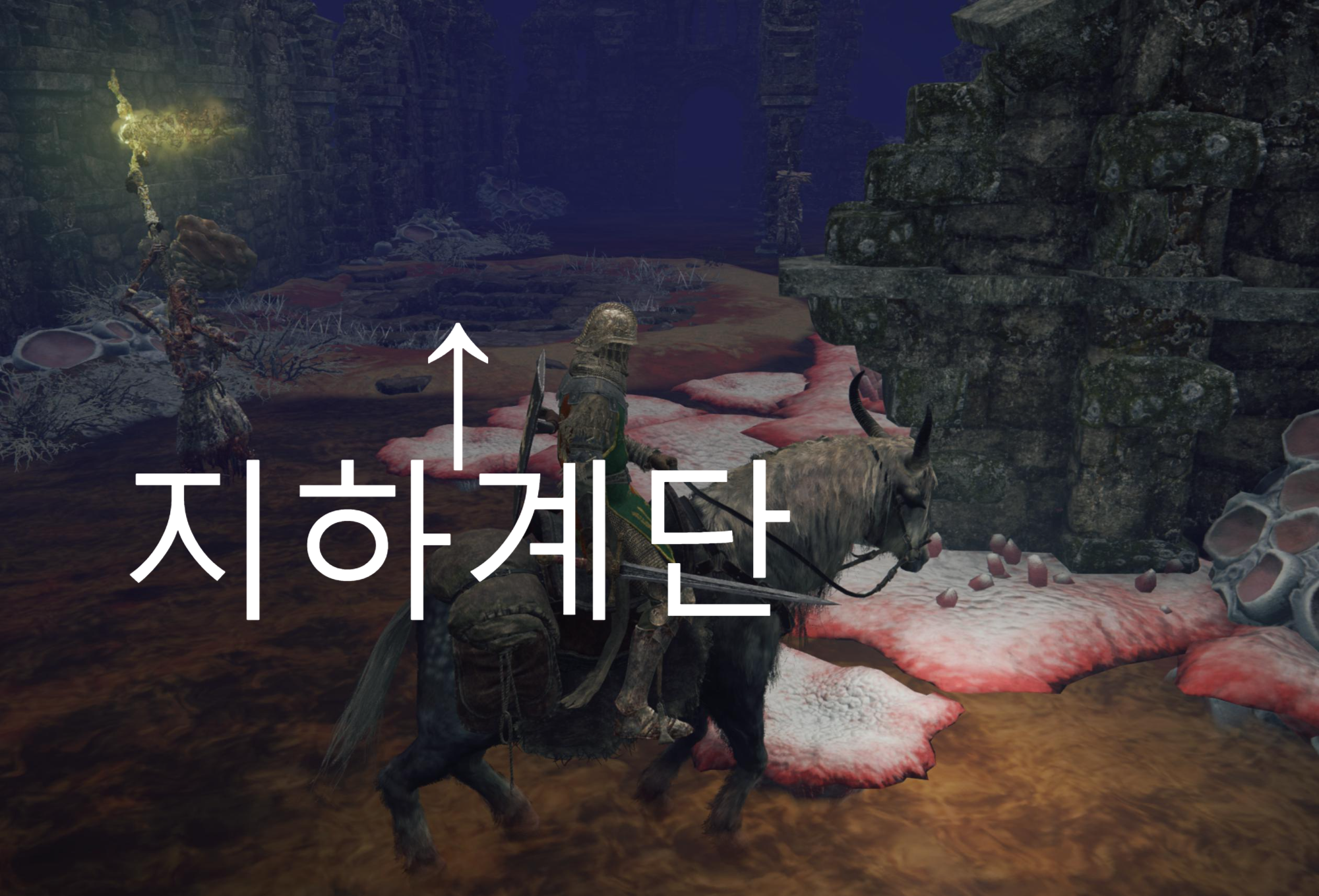 몬스터에게 다가가보면 바닥에 구멍이 있고 들어갈 수 있습니다. 계단 끝에 방이 하나 있는데 쥐가 있으니 말을타고 잡으시거나, 영체 소환하시면 쉽게 처리 하실 수 있습니다.