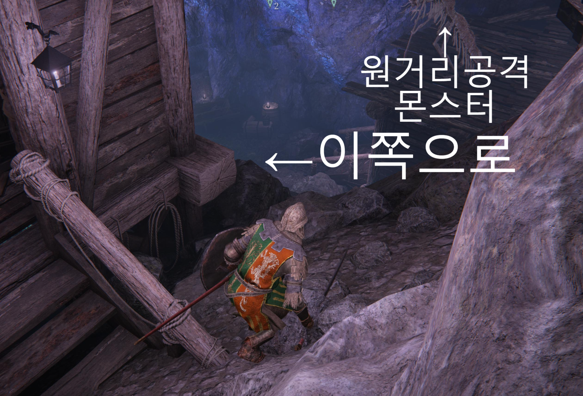 원거리 공격 몬스터를 조심해서 아래로 쭉 가주시면 됩니다. 동굴 하나니까 동굴로 바로 달리시면 됩니다. 몬스터가 느리긴 하지만 생각보다 강력하니 주의해주세요!