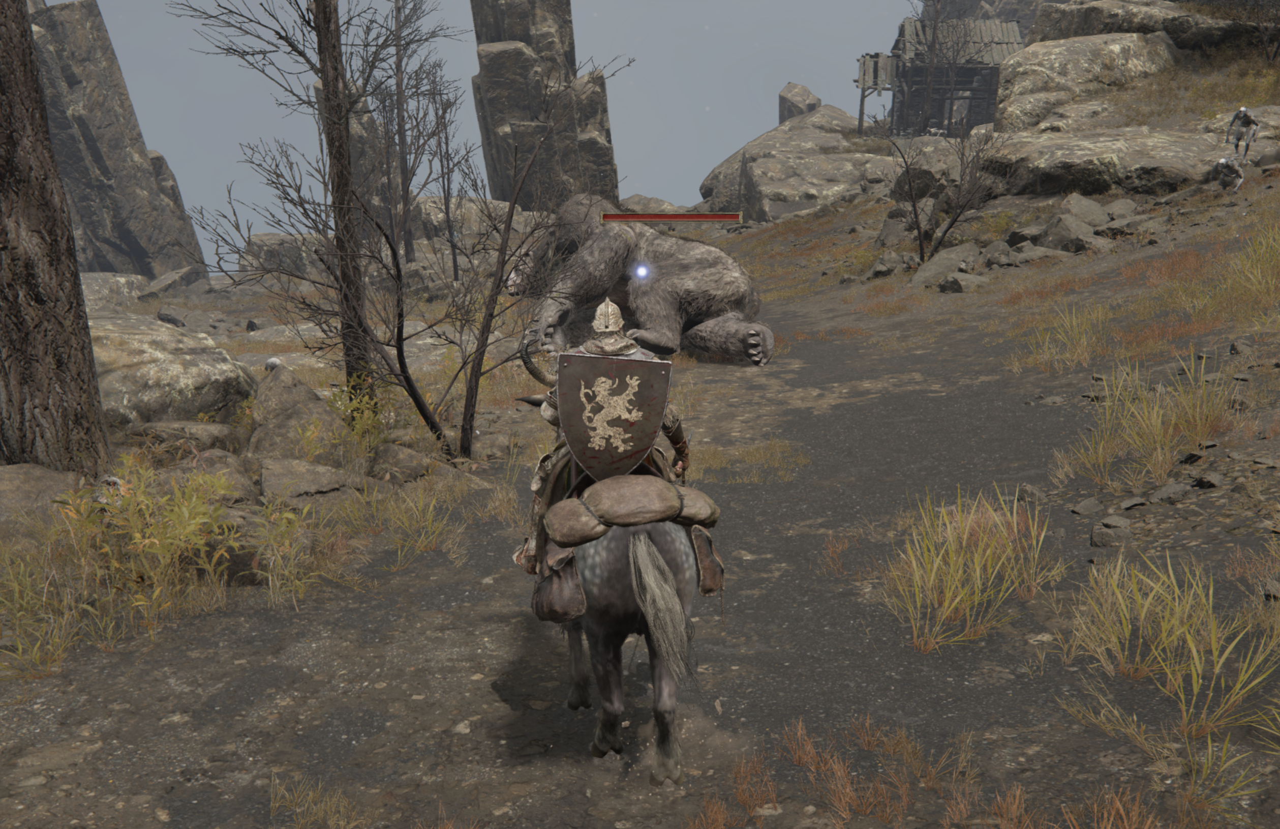 용암토룡을 피해나오면 이제 좌측으로 집이 보이는 길이 나오는데 사실상 외길입니다. 집에 이런저런 아이템이 있지만 몬스터 수가 많기 때문에 언덕으로 올라가지 않고 바로 직진했습니다. 중간에 언덕에서 곰이 뛰어내려 오는데 상당히 강력하니 무시하고 쭉 달렸습니다.