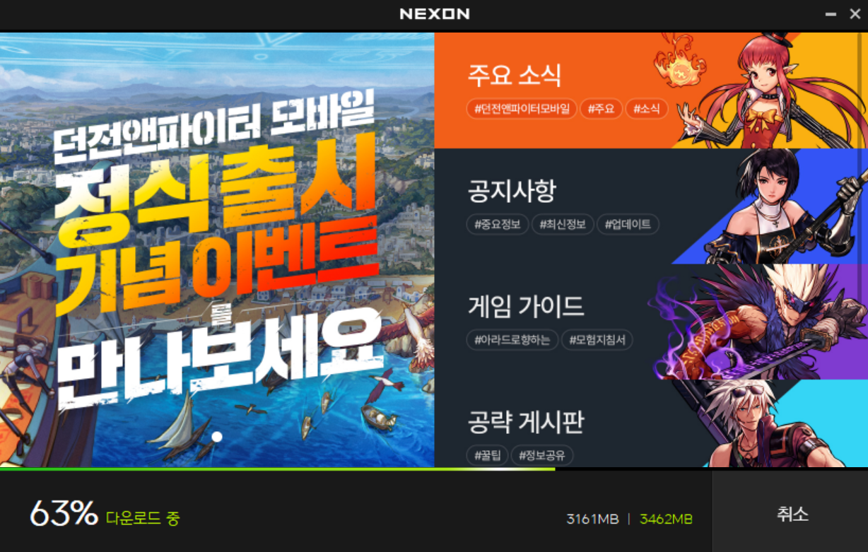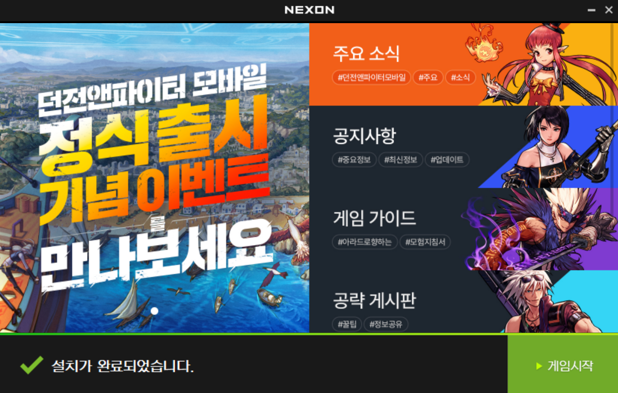 던파 모바일이 출시되고 PC버전으로도 가볍게 해볼수 있대서 접속을 해봤습니다. 웹게임처럼 무설치란 소리를 하길래 해봤는데.. 설치는 해야되네요 ㅋㅋㅋ