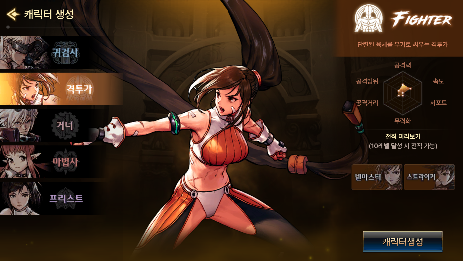 크... 뭔가 모바일 던파라기보다 옛날 오리지널 던파로 간 기분이네요 ㄷㄷ 사커킥 추억이 생각나서 스트라이커 해볼 생각에 격투가로 시작했습니다.