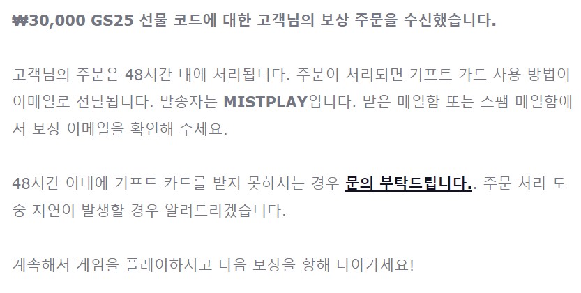 미스트 플레이를 통해 게임을 설치하고 연동해 플레이하면 게임 레벨, 플레이 시간 등을 측정해 일정 보상을 주고 그 보상을 여러 종류의 상품권으로 교환할 수 있습니다. 일단 실제로 써보고 나서 리뷰를 쓰자 주의라서... 일단 설치해놓고 한 달 정도 사용해봤습니다.