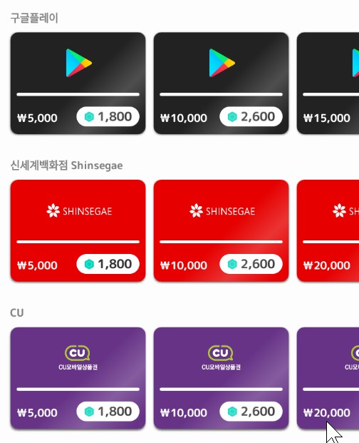 실제로 현금으로 교환을 하는건 아니었습니다. 아이템 매니아 포인트도 교환 가능하길래 읽어봤더니 현금으로는 교환 불가능한 포인트였습니다. 그래도 미스트 플레이를 통해 포인트를 모아 구글 플레이, 신세계백화점, CU, GS, 도서상품권, 해피머니, 틴캐시, 아이템매니아 등의 상품권이나 포인트로 변경하는 게 가능했습니다. 현금처럼 사용 가능한 포인트들이니까 뭐 돈을 번다고 생각을 할 수도 있을 것 같습니다. 개인적으로 바로 코앞에 GS가 있어서 GS25 모바일 상품권으로 교환을 해봤습니다.