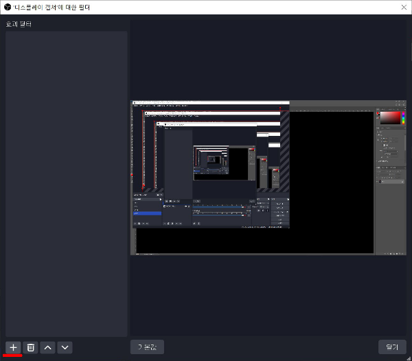 소스 목록에서 + 버튼을 누르고 디스플레이 캡쳐를 추가해줍니다.