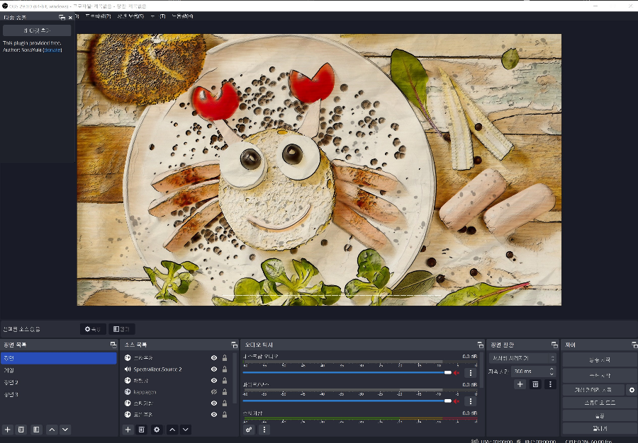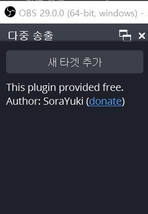 이제 OBS를 실행해 보면 좌측상단에 다중송출 메뉴가 생긴게 보일겁니다. 만약 보이지 않는다면 상단메뉴 독->다중송출에 체크해주세요. 그래도 안보이면 플러그인이 잘못 설치된겁니다.