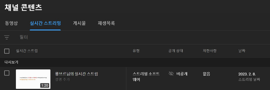 유튜브 실시간 스트리밍 확인