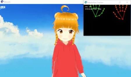 오 잘 움직이네요. 손가락 인식되는 걸 보여드리려고 MediaPipe Tracker 창도 같이 캡쳐해봤습니다.