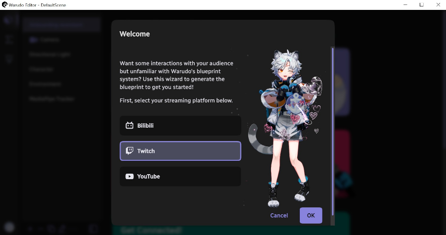 Warudo is the flexible & personalized 3D VTubing software you have always wanted. Built-in face & hand tracking, custom 3D assets, Twitch/YouTube integration, blueprint system, C# plugins, and so much more.