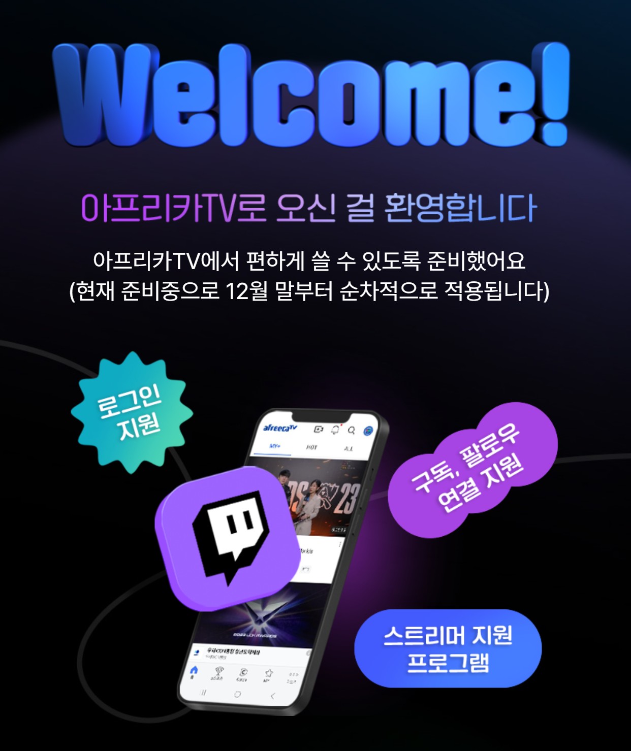 welcome! 아프리카TV로 오신 걸 환영합니다. 아프리카TV에서 편하게 쓸 수 있도록 준비했어요 (현재 준비중으로 12월 말부터 순차적으로 적용됩니다)