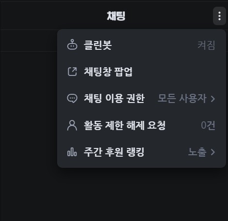 내 방송국 채팅창 우측 상단에 점 3개를 누르고 채팅창 팝업을 눌러줍니다.