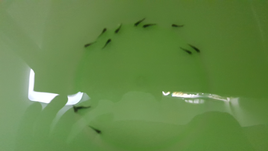 태어나서 약 반나절~한나절 정도는 난황을 소비하고 있어 먹이를 먹지 않습니다. 다만 워낙 작은 크기라서 난황을 다 소비한 건지 아닌지 눈으로 보기가 어렵습니다 ㄷㄷ 저는 약 5~7일을 두고 몇 차례 알을 수거해서 치어가 주차별로 섞여있어 브라인을 계속해서 뿌려줬습니다.