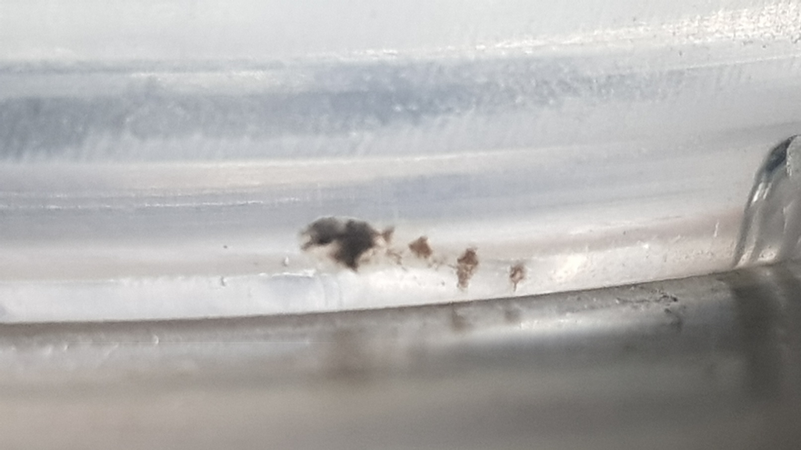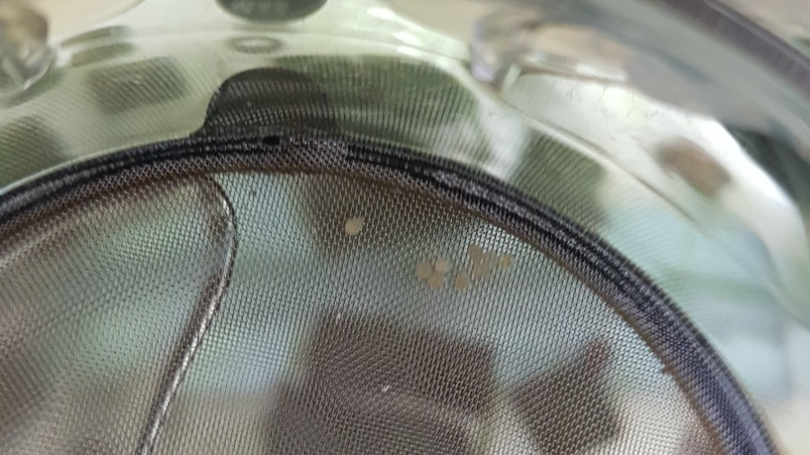 이제 막 붙인 알은 생각보다 약합니다. 시간이 조금 지나면 비교적 알이 단단해지는데 그렇다고 시간을 두고 기다렸다 수거를 하자니 하룻밤을 지내고 나면 꽤 많은 숫자가 알밥이 되어버립니다. 저는 그냥 보이는 대로 스포이드나 손가락으로 조심스럽게 수거했습니다.