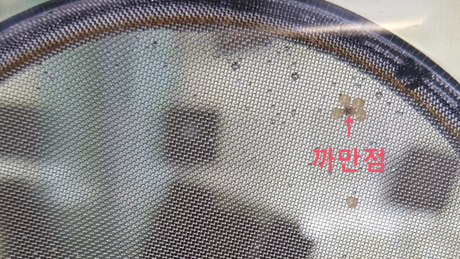 사실 저도 알을 떼서 투명하니 불투명하니 해도 잘 구분이 안 됐습니다;; 너무 작아서 잘 보이지도 않고 유정란이라 생각했는데 누가 봐도 하얗게 변해가는 경우도 있었기 때문입니다. 조금 더 확실한 구분 방법으로 약 이틀 이상 지나면 알 속에 까만 점이 생기는 걸 볼 수 있습니다. 까만 점은 알속에 있는 치어이니 확실한 유정란 구분 방법이라고 보시면 되겠습니다.